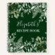 Watercolor Botanical Greenery Recipe Carnet comprend des feuilles de lierre, de fougères et de sauge. Votre nom dans un script élégant. Arrière - plan vert forestier.