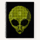 Carnet Artistic Green Alien Head on Black Background