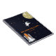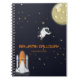 Joli astronaute de dessin animé de l'espace extra-atmosphérique et navette spatiale en route pour la Lune dans un cosmos noir étoilé à paillettes dorées. La typographie de texte de style âge spatial peut être facilement personnalisée avec le nom et le numéro de téléphone de votre enfant. Un cahier super cool pour l'école ou à la maison pour tout aspirant explorateur des mystères de la galaxie.