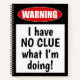 Ce drôle de carnet dit : ATTENTION ! JE N'AI AUCUNE IDÉE de ce que je fais ! Ce carnet mignon est sûr de se faire rire au travail ou à l'école, ou où que vous l'utilisiez. La couverture arrière comporte une petite clause de non-responsabilité qui dit : Le propriétaire de ce livre n'a absolument aucune idée de ce qu'il fait. Veuillez prendre les précautions appropriées. Un grand cadeau pour quelqu'un qui se sent submergé par les mathématiques ou tout autre sujet scolaire.