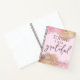Conception de nom personnalisable pour un cadeau inspirationnel personnalisé avec une citation "Aujourd'hui je suis reconnaissant", dans la typographie moderne lettrée à la main, avec un effet agate abstrait fait avec de l'encre d'alcool dans les couleurs rose, mauve et or.