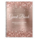Créez votre propre livre d'or dans ce carnet vierge pour son baby shower glam. L'arrière - plan art numérique présente une parties scintillant rose couleur or brillant sur les bords supérieur et inférieur d'un or rose et un faux papier métallique rose vif. Vous pouvez customiser la couleur, le style et la taille de la police ou ajouter du texte si nécessaire.