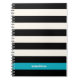 Joli carnet en spirale avec de larges rayures noires et crème avec un accent d'eau turquoise estivale. Personnaliser avec un nom, un monogramme ou un texte de votre choix.