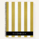Carnet Bandes d'or, Motif rayé, Lignes, Votre Nom