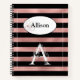 Elégant or rose et rayures noires avec un initial orné en font un carnet mignon et classe. Personnalisez-le avec votre nom ou customisez-le pour quelqu'un d'autre !