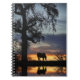 Un joli carnet de cheval réfléchi dans un étang au coucher du soleil avec un chêne. Une belle image de la nature, sereine.