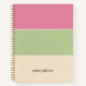 Ce carnet est décoré dans un style simple en blocs de couleurs, dans des tons rose, vert sauge et crème, offrant un look amusant et élégant. Le motif couleur corbeille de fruits est idéal pour imprégner une touche de vibrations estivales dans votre bureau ou l'esthétique de retour à l'école. De plus, votre nom sera inscrit dans un élégant script de calligraphie.