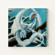 Petit dragon blanc mignon assis dans un arbre à feuillage persistant et profitant d'une journée d'hiver.