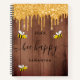 Carnet Bee joyeux bois brun or parties scintillant nom go