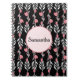 Avec de belles couleurs dramatiques, ce carnet est une oeuvre d'art. Avec une belle vigne rose rose et blanche sur le noir comme arrière - plan, il y a un graphique circulaire rose au milieu, parfait pour ajouter votre nom. Commandez dès aujourd'hui ! OEuvre florale Arrière - plan : AMBillustrations http://www.etsy.com/shop/AMBillustrations/