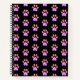 Belles pattes d'animal de compagnie dans les couleurs violet et rose sur l'arrière - plan noir.