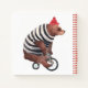 Cette conception présente une aquarelle illustrant un ours sur une bicyclette portant un pull rayé et un casquette rouge.