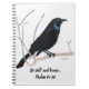 Il s'agit d'un Carnet Spiral avec l'image d'un oiseau noir dessiné au crayon coloré et comprend un verset inspirant.