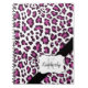 Le carnet de conception d'empreinte de léopard dans noir, pourpre, et le blanc avec une rayure noire et une bannière blanche a affilé avec le noir que vous pouvez customiser avec votre initiale de nom et de monogramme.