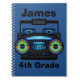 Carnet bleu fait sur commande frais, comportant notre conception de caisson de basses de musique - grande pour des garçons pour de nouveau à l'école ! Vous pouvez personnaliser avec le nom du garçon ! !