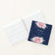 Un arrière - plan bleu chic avec des fleurs roses et du feuillage argenté. Personnalisez et ajoutez votre nom, titre et année. Le nom est écrit avec un script de style moderne écrit à la main.