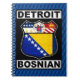 Bloc-notes américain de Detroit. Bouclier de conception de style routier classique, avec le texte Detroit Bosnien, et les drapeaux de la ville de Detroit et de la Bosnie-Herzégovine.