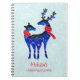 Carnet de planificateur de Noël personnalisé avec un arrière - plan vert clair et blanc enneigé. Illustré par une paire de cerfs bleus scandinaves portant des foulards rouges. Avec des marquages décoratifs sur le corps.