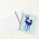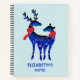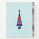 Journal en spirale personnalisé avec un arrière - plan bleu vert clair. Illustré par une paire de cerfs bleus scandinaves portant des foulards rouges. Avec des marquages décoratifs sur le corps. La couverture arrière a l'image d'un sapin de Noël de style nordique en bleu et rouge avec une étoile sur le dessus.