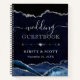 A luxurious design featuring deep navy blue agate textures accented with shimmering silver glitter for a glamorous, modern finish. Elegant flowing script pairs with bold serif typography to create a refined, high‑end aesthetic. The rich blue tones evoke sophistication and timeless elegance, while metallic highlights add sparkle and drama. Perfect for weddings with gemstone or geode themes, this chic design brings a polished, editorial look to your guest book—ideal for romantic celebrations and stylish evening receptions.
