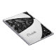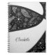 Ce mignon carnet à thème de basket présente l'image réaliste d'un ballon de basket abstrait surdimensionné qui a recoloré alternant panneaux noirs et blancs avec de délicates fleurs de doodle dessinées à la main, plumes et paislies modelées sur les panneaux noirs du basket - personnaliser avec le nom de l'athlète - par katz_d_zynes
