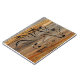 Plaque en bois coloré sur une diagonale recouverte d'un contour de tête de cheval.