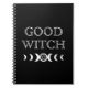 Bonne sorcière carnet en spirale noire avec étoile en cercle, triple déesse symbole. Idéal pour Halloween ou pratiquer les sorcières.