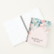 Un carnet en spirale personnalisé avec une élégante bordure florale. Fleurs et feuilles en rose et vert.