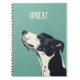 Ce carnet comporte une illustration de chien boxer sur un arrière - plan vert avec le texte par défaut personnalisable "upbeat". Il s'agit d'un excellent design pour les propriétaires de Boxer, les propriétaires de chiens et les amoureux de les chiens.