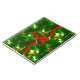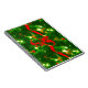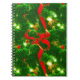 Carnet dans un motif de branches d'arbres de Noël illuminé de lumières blanches et décoré de guirlandes de ruban rouge
