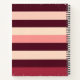 Des rayures horizontales larges, bordeaux et roses paraissent un peu fatiguées sur ce beau carnet. Parfait pour la maison, le bureau ou l'école.