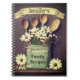 Livre de recettes familiales à look vintage par Amelia Carrie avec un look vintage avec marguerites, burlap et boutons.