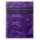 Carnet motif Camouflage en violet foncé avec titre modifiable et bloc d'auteur. Personnalisez sur la page du produit le texte, les chiffres ou les symboles de texte de votre choix.