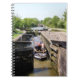 Un dessin photographique d'un canot étroit qui vient d'entrer dans l'écluse et d'attendre la fermeture des portes d'écluse.