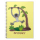 Ce joyeux gibbon est suspendu à un arbre de la jungle. Dessiné en amusant dessin animé style d'illustration pour le plaisir de la forêt tropicale.