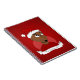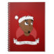 Design personnalisé avec une illustration d'un Africain-Américain souriant heureux avec le casquette du Père Noël ; avec modèle texte modifiable, design de Noël avec un arrière - plan rouge, par Radka Kavalcova