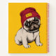 Ce design présente un joli carlin hipster chiot dans un casquette beanie rouge.