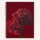 Carnet avec un rouge foncé, un arrière - plan bordeaux et de belles fleurs d'oeillets rouges.
