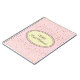 Carnet représenté avec un graphique de petites étoiles en or sur un arrière - plan rose vif avec l'expression "Carnet de la mariée" à l'intérieur d'une forme ovale avec des bordures coordonnées de mauve et taupe. Customisez cet article et changez le nom en votre nom ou retirez le nom, changez les couleurs de l'étoile en filtre, couleur arrière - plan ou achetez tel quel. Doré, ivoire, bordelais, mauve et rose roux.