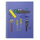 Carnet personnalisable avec dessin animé Whimsical Art d'outils de menuiserie avec marteau, scie, tournevis, clé de singe, pinces et règle, avec les yeux! Création numériquement par KLeighE de Hinterland Harmony’s Whimsical Cartoon Art ™
