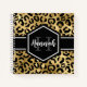 Carnet carré or et noir empreinte de léopard avec un nom personnalisé et modèle monogramme. Un motif poster de animal de safari mignon et branché, arrière - plan surmonté d'un petit morceau de personnalisation.