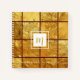 Une grille dorée de luxe scintillante carré avec un script monogramme initial chevauche un arrière - plan riche, or et sombre sur ce chic, élégant, tendance, nom personnalisé monogramme carré carnet spiral. Vous pouvez le personnaliser avec vos initiales. Un grand cadeau pour un ami, ainsi que pour vous-même !