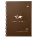 Arrière - plan brun foncé avec l'image d'une petite carte du monde et d'un avion, personnalisé avec le nom et les initiales du voyageur élégant... pour petites notes de voyage