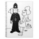 Carnet de police avec une drôle d'image de dessin sur la couverture. Cadeau pour un policier. Lady est surprise de voir un coucou sortir du casque d'un policier en demandant l'heure. Dessin du caricaturiste britannique Nigel Sutherland.
