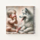 Ce moment adorable où un bébé est face à face avec un chiot Eskimo américain, leurs yeux se rencontrent et sont étrangement fascinés les uns par les autres. Parfait pour un cadeau de la Fête des Mères ou un cadeau d'anniversaire pour une nouvelle maman.
