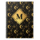 Carnet Monogramme Motif céleste Black & Gold Stars Lune. Personnalisé lune céleste rayons étoiles et tous voir oeil en fausse feuille d'or et noir. facile à utiliser modèle juste ajouter votre initiale.