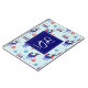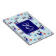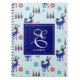 Un carnet en spirale avec un motif extensible. Illustré par une paire de cerfs bleus scandinaves portant des foulards rouges. Avec des marquages décoratifs sur le corps. Ainsi qu'un trio d'arbres rouges et bleus de noël avec une étoile au sommet. De beaux flocons de neige parsemés autour. Un carré superposé avec votre nom et votre initiale monogramme personnalisée.