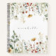 Ce design boho rustique présente une bordure fleur sauvage d'aquarelle dans les tons rouge, or, vert et bleu.