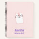 Un carnet en spirale avec l'illustration d'un mignon chaton endormi. Les yeux fermés ont l'air heureux et paisible. Sur un arrière - plan rose pâle. Personnaliser avec un nom. Le dos a la même image en format motif.