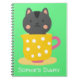 Chat mignon dessin animé dans une tasse de thé. Conception colorée pastel pour enfants pour un cadeau ou une décoration pour enfants. Fond vert menthe sur certains produits. Thème d'animal mignon. Chat adorable.